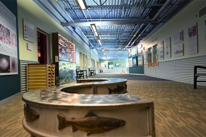 Hands-On Elements: Interactive exhibits allow visitors to learn about salmon development and fisheries science.