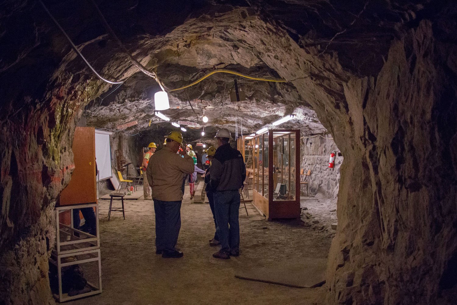 See real engineering demonstrations: ventilation systems, drilling rigs, rock bolts, and sensors