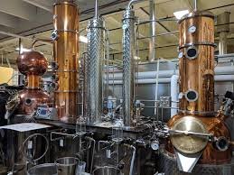 See copper stills, fermentation tanks, and bottling equipment